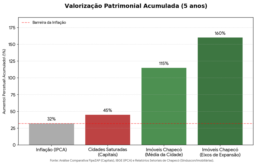 Diferente de grandes capitais ou cidades litorâneas que já atingiram o topo de preço (platô), Chapecó vive uma curva de ascensão acelerada.